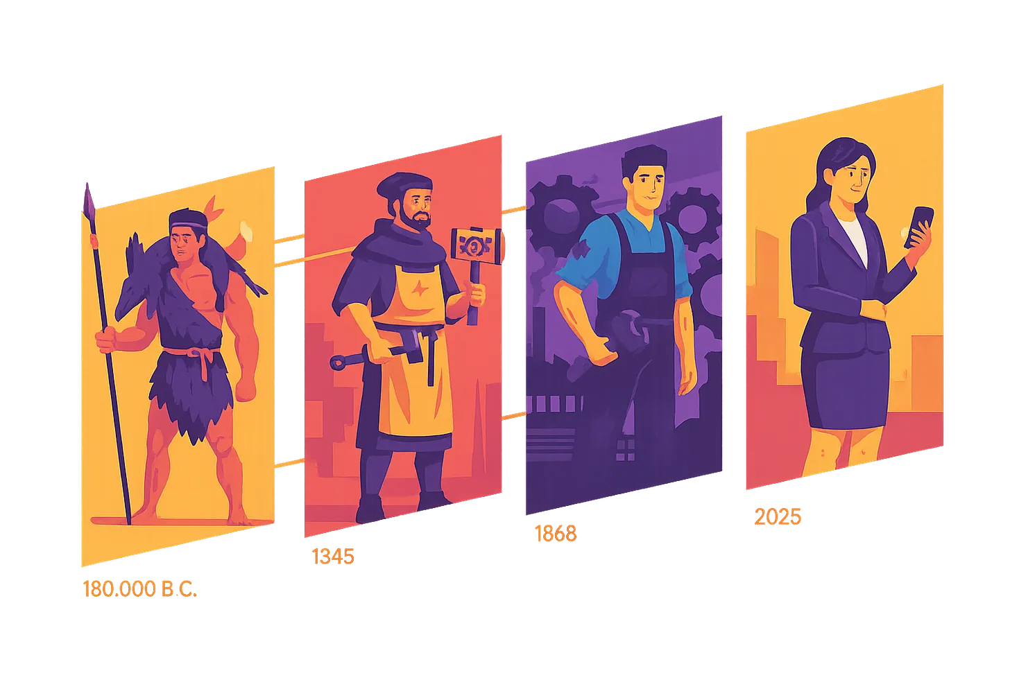 For the most part of history, work has been a central theme of humanity: Agriculture laid the foundation for human expansion and the the first empires in history. The specialisation of labor led to the renaissance and the first age of discovery. During the Industrial Revolution, mechanization, steam power, electricity and scientific management allowed for mass production; and globalization finally created a global division of labor between the developed world and emerging economies.